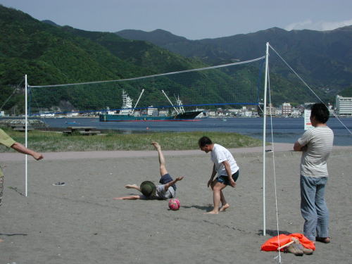 予想以上に大変だった船底掃除のお蔭で、船底もハルのブルーラインも実にきれいに磨きあがったアンタレス3世。 そしてエンジン関係の憂いも解消して清々しき気持ちでの今年の初航海です。 乗船者も全員ベテランぞろいでルンルンで戸田へ 2日前くらいの天気予報では曇りか雨を予報していましたが、まったく当たりません。午前も午後もTシャツ&短パンで過ごせる超快晴でした。 御浜海岸でビーチバレーに興じましたが、慣れない砂浜のジャンプはたいへんお疲れさんの様でした。 でも楽しい一日で 日焼けもバージョン1.0としっかりインストールです。