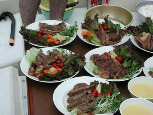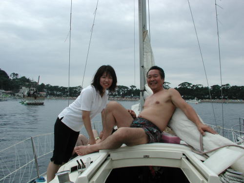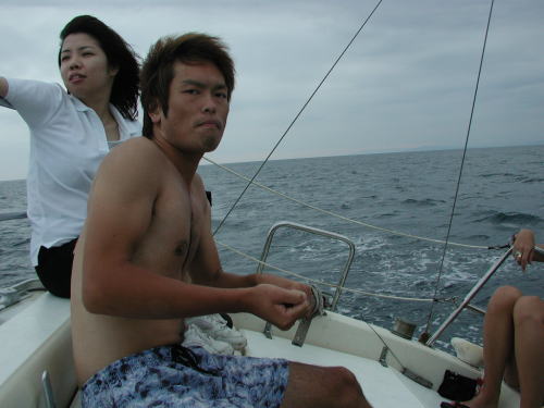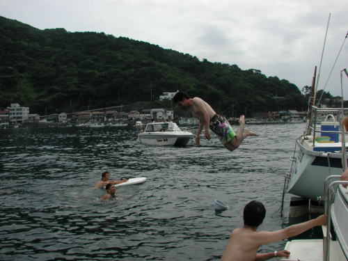 先週から始めた、「うみねこ」の餌付けを今日は出航直後に実行しました。生け簀に翼を休めている「うみねこ」も仲間が夢中でパンくずを追いかけているのを見て直ぐに大集団になり大騒ぎでアンタレスを追いかけて来ました、が よく観察してみるとまだ沢山の「うみねこ」が生け簀に平然ととまっています。鳥達にも付和雷同しない変わり者がいるんだな・・・って感心しました。 いつもの通り戸田の「水八丸」に係留したら海水浴客の監視船が近づきもっと沖合いへ移動してくれとのこと、誰がそんなことを言うのか質したら監視センターからの指示とのこと、「水八丸」は既に充分沖合いで岸から泳いでくるところでない場所であるのにプレジャーボートと云うだけで、危険だからと排除に掛かってくる、俺達も海水浴にきているんだ・・・ アクセスの手段が違うだけでなんでこんなに締め出されなければならないんだと憤りを感ずる。日本の木っ端役人は何でも規制をして事故責任を回避している、まったく了見の狭い人種・・・ 少し沖合いに知り合いのボートが沢山係留しており一緒に係留させて貰い沖の沖の深〜い海で海水浴をたのしむ。今日は往復とも上り気味の丁度よい風が吹きゲストに舵を取ってもらいセーリングの楽しさを味わってもらう、久しぶりのクローズホールドのセーリングでした。