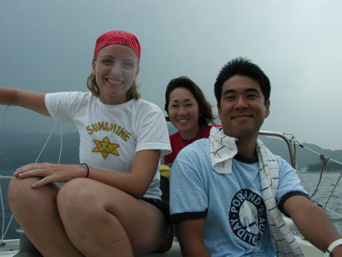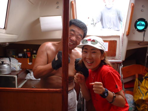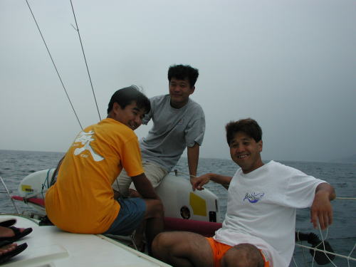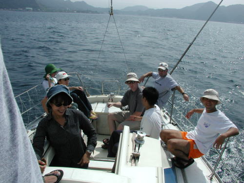 日本に着いたばかりでホヤホヤの外国人ですがみんな仲良くで楽しそう・・・・・・・ 戸田の係留はいつもの通り「水八丸」に横付けしましたが、今日は何の音沙汰もありません。Yozo曰く 「その一貫性のなさ」が問題なんだ・・・・ でも落ち着いて遊べてよかつたで〜す。季節外れの東よりの風が終日吹き帰途は先週と同じくクローズホールドでヨットらしい軽快な帆走が楽しめました・・・・