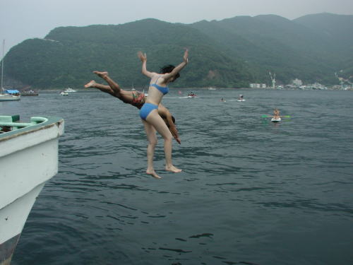 お空も海の水も快晴で〜す、ここ3週間程東よりの風のせいでしょうか海水の透明度が冬並によく気持ちの良い海水浴が楽しめます。偶然ですが、今日のゲストのMattとSarah