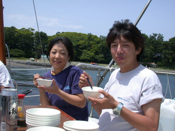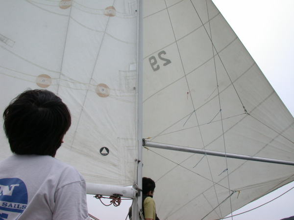 水曜日から昨夜まで降り続いていた雨 さすがアンタレス3世の晴れ男集団です。朝から快晴になっちゃいました、予報は曇りなのに・・・・ ヨット初めてのゲスト3人を迎えて意気揚々と出航で〜す。今日のメインゲストはマスコットギャル候補生としての小学校5年生のサッちゃんです。 いつも通り東大寮前の桟橋に係留して上陸 ビーチバレーやフリスビー大会の開催で一汗流しました、帰途 南からの追い風に乗り出航後一時間で西浦沖まで一気に帆走 江之浦まで1時間40分の記録を破る勢いでしたが、最後に無風となって息切れです。 午前は当たらなかったが帰港して片付けが完了したら天気予報通り雨が降り始めた、最高にラッキーな日曜日で〜す。