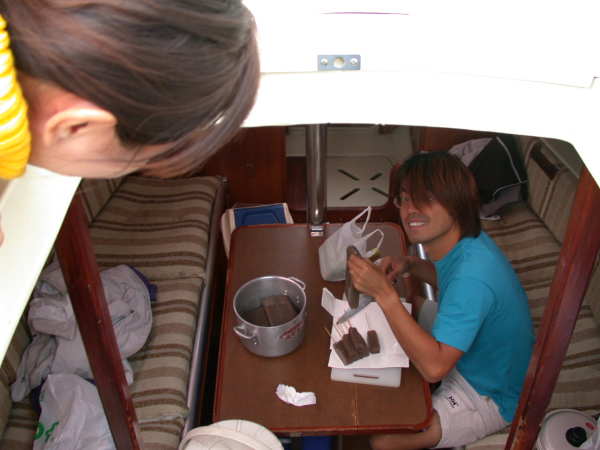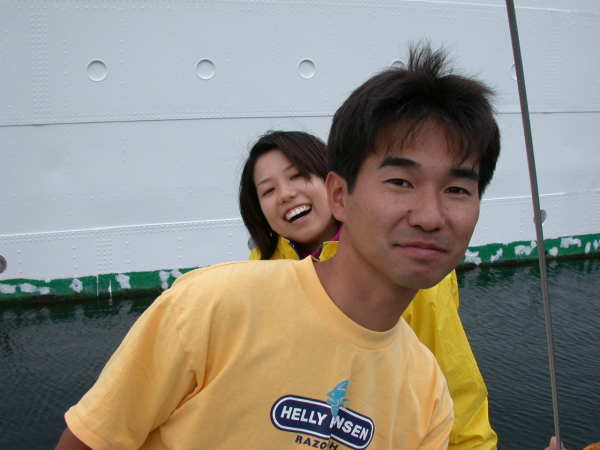 | 出航日時 2002.09.22 JST 08:55 〜 16:15 寄港地 大瀬岬 経由 ホテル・スカンジナビア 気 象 くもり 後 小雨 風 AM 南南東 12〜14m/sec PM 北東 6〜7m/sec Captain M.Ochiai Crew Yuzo.O Hideyuki.T Tadamitu.T Jun.Y Shinji.C Tomoko.A Erika.T Miyuki.N Sayoko.N Mituyo.W Asuka.H Menu にく丼 味噌おでん ボイルエビ ヨーグルト&フルーツ |