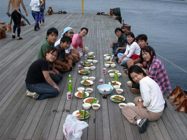 | 出航日時 2002.09.29 JST 08:55 〜 17:05 寄港地 大 瀬 岬 気 象 快 晴 風 AM 南 6〜7m/sec PM 南 1〜2m/sec Captain M.Ochiai Crew Yuzo.O Hideyuki.T Tadamitu.T Teturou.T Junichirou.H Kouichirou.S Tomoko.A Erika.T Aki.T Yukiko.E Menu オロシとんかつ 赤だし味噌汁 栗ご飯 ヨーグルト&フルーツ |