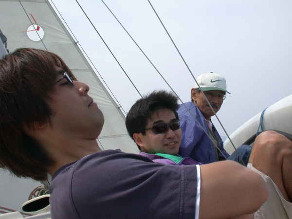 | 今年のGWは当りですね! 今日も終日快晴の良い天気でした、遠く岐阜からワザワザ我がアンタレス3世の乗船に2泊3日で来てくれたKさん達にもセーリングの楽しさを味わって戴けたかと思います。出航前の無風状態がすぐにSWから6〜8m/secの風と共にウサギが飛び始める5月特有の気象状況です、ワンポイントリーフで縮帆してもデッキを洗いそうなヒールで楽しいセーリングが出来ました。久方ぶりに大瀬湾に入港です、ダイバーのメッカになっている大瀬もショップのマスターに聞くとダイブ景気の影響で沈んでいるとの事です。桟橋近くで浮き上がって轢かれそうになり怒鳴られている素人ダイバーがいても景気は浮き上がらないようですね。今日の富士山は美人が乗ると顔を隠す、の諺通り残念ながら姿を見せてくれませんでした。 |