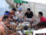 | 台風前の快晴???? 駿河湾北部は5mの波との予報ですが・・・・波高は高いとは感じられないが寄せ引きの波のストロークが強くand大きかったです、普段は白波など見せない内浦湾の海岸沿いも白波が立っている状況です。井田は勿論、戸田行きも諦め大瀬へ向かいましたが大瀬のポンツーンも激しい寄せ波の為係留することができません。楽しく安全に遊べる場所を探しながらリターンし、久しぶりに足保に入港しました、足保もうねりの影響を受けていましたが岸壁着岸が一番安全な場所なので・・・午後には港内の浮遊物もキレイになり直射日光にあぶられ堪らずみんな一斉に飛び込み気持ちの良い海水浴を楽しみました。もちろん港内で泳いでいるのはわれ等だけです、大型台風の隙をついた楽しい一日でした。 |