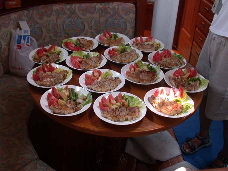 | 出航日時 2006.08.12 JST 09:18 〜 17:40 寄港地 戸 田 港 気 象 AM 曇 り PM 雷 雨 風 AM 感じず m/sec PM N 8-10m/sec Captain M.Ochiai Family Yuzo.O Crew Tadamitu.T Jun.Y Akihide.I Daisuke.T Hiroshi.H Isamu.M Risako.N Yoko.S Chiemi.S Sachie.S Hiromi.N Chiharu.O 合計 14名 Menu ポークステーキ コーンポタージュ フルーツ&ヨーグルト |