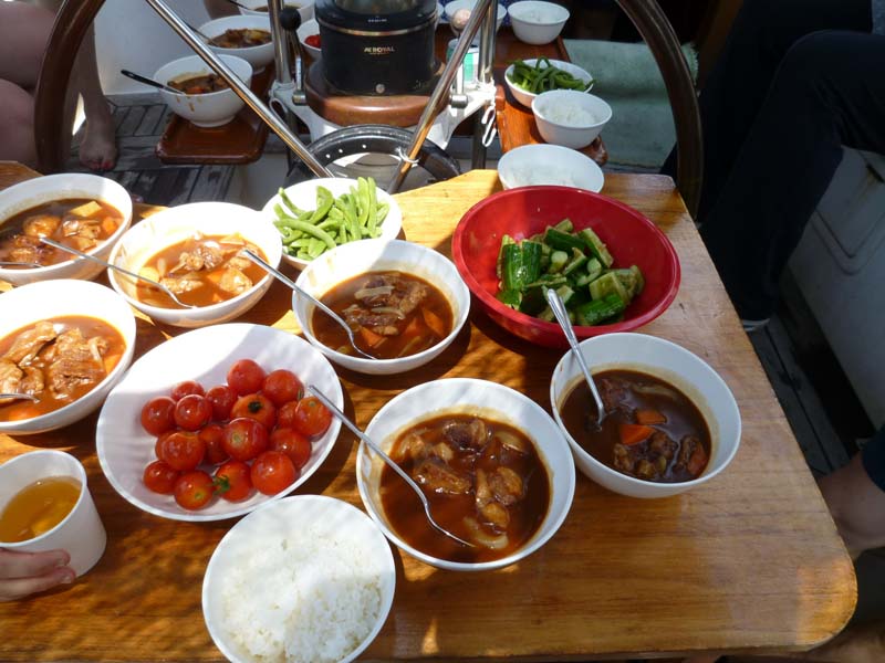 | 出航日時 2011.08.07 JST 09:05 〜 17:25 寄港地 大瀬(手前入江) 気 象 AM 曇り PM 曇り 風 AM SE 2-3m/sec PM SW 3-4m/sec Captain Mamoru.O Family Crew Tadamitsu.T Hideyuki.T Shinji.C Isamu.M Nobuyuki.D Mitsutaka.K Naoto.O Yuta.C Chiemi.S Shinobu.Y Yoko.D Takako.K Manami.O 合計 14 名 Menu ビーフシチュー フルーツ&ヨーグルト |