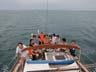 | 台風9号と10号に挟まれた今日、雨予報が曇りとなりギンギラ太陽を避け心地よく過し易い夏日和に変った・・・・珍しくドタ乗りもあり14名の乗員で賑やかに出航、泳ぎを目的とする為井田の堤防を目指したが大瀬を交わすと海岸線には白い波しぶきが被さっている 10号のうねりが入り込んでるのが目視出来る、うねりの入る場所では居心地が悪いので井田を諦め大瀬東側の入江に戻り停泊中の僚船「Sea