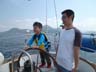 | 絶好の行楽日和 快晴・風も丁度好し、ANTARES3世初期時代の女性クルーT子さんがご主人と息子Wataruくんを伴って10余年ぶりに乗船、総員13名にて出航・・・WataruくんはメインクルーCくんの息子Yutaくんとすぐさま意気投合して活動を開始、若きクルーの活躍した一日だった。後部デッキから立ち上がっての操船や舵輪から頭が出ないWataくんは船長からの面舵何度・取り舵何度ヨーソロの掛声での操船は見事だった。往路復路とも帆走を楽しむにはベストの風が吹き、陽射しは強くても暑さを和らげる海風が実にすばらしく文句の付けようのないクルーズが楽しめた。みんなの心がけが良かったのか・・・・ 本日の航跡 往路 Max帆走Speed 14.5km/h(7.8knot) Distance20.0km Time02:00 帰路 Max帆走Speed 14.4km/h(7.8knot) Distance16.4km Time02:36 。 |