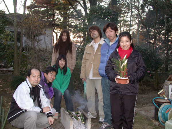 お正月に向かっての準備態勢に入りました、ミニ門松の製作に応援団が駆けつけ終日竹を刻んだり、得意のロープワークを生かして三本の竹をシッカリ結ぶ作業を行いました、とりあえず30setの基本準備が出来たので後は鉢に入れディスプレーのみです、例年なら一人ですが やっぱり仕事は大人数ですね 竹のカットも結束も殆どクルーのみんなにやってもらっちゃいました・・・・ みんなご苦労様でーーす。 |