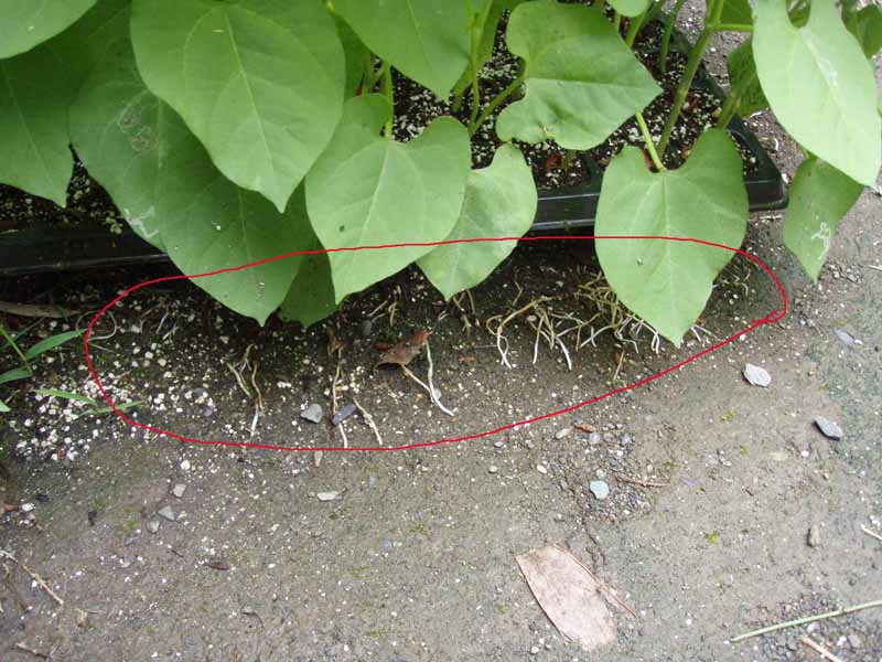 インゲンの苗 大きくなり過ぎている、GWに畑の準備が未完了のためとりあえずポットに種蒔した、もう本葉が出てしまう程生育 このままでは栄養不足で駄目になりそう・・・もの事には全てタイミングがあり時期を喪失すると良い物が出来ない!!!約80株くらいあるので、チャント育つと凄い量のインゲンが採れるのだが・・・・(写真は昨日) |