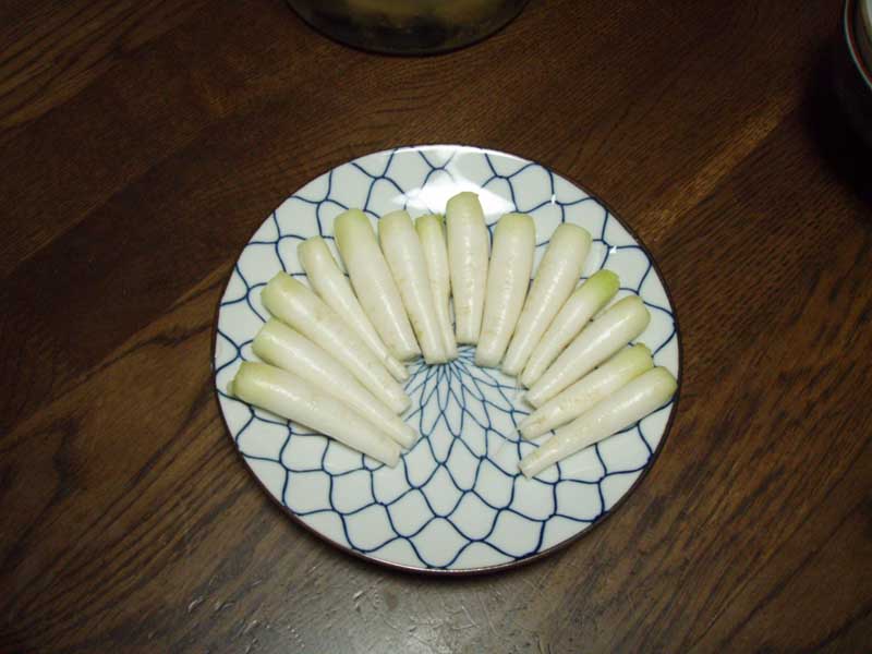 冬台風が日本列島を縦断した昨日の荒天が今日は一転して穏やかな好天・・・大雨だったが風も強かったので畑の土は意外に乾いていた。タマネギ400本を定植してひと安心だ(^ム^) 後は育苗中のソラマメとグリーンピースを植えれば今年の作付けは完了する。間引き大根がたくさん取れる、でも2人では1本あれば充分、シイタケもシーズン入りして一雨毎に楽しむ事が出来るようになった。18日の週末から正月飾りの準備に入るよ・・・・菜の花(アスパラ菜の頭立ち) |