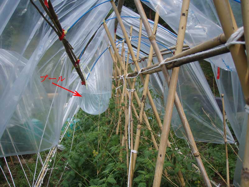 大失敗 朝一昨夜からの大雨の影響を見に行った、やっぱりプールが出来ていた、朝食後雨合羽で完全武装して撤収に入り屋根をすべて回収した。一番の原因は屋根用ビニールを50%にケチった事、一昨年からの経験でプールと風対策の設定をした積りが、屋根ぶきの時の突然ビニールの縦横を逆にして一畝に4枚使う予定を何を考えたか2枚で済ませてしまった、結果が風にも弱く、プールも作った。まだ苗が小さく間に合いそうなので天気が回復次第再設定を試みる。サクランボの完熟が見えない・・・昨日までたくさんあったのに今朝は殆ど無し、ネットの緩みはないが東側の1ヶ所に側溝の溝から潜り込めるが鳥がそんな所を往復するか?疑問 |