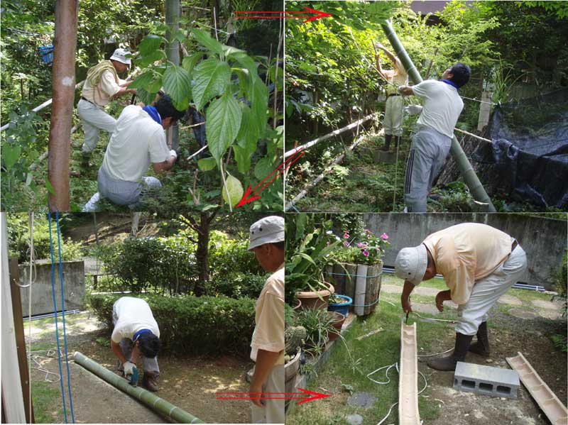 流しソーメン をやる為に横浜組が午前10時には帰省した、早速孟宗竹の切出しと加工に入り12時丁度に準備完了・・・みんなでとっても楽しく戴きま~す。写真を撮るのを忘れてしまったが庭の上には農業用の寒冷紗(1.8mX5m)を張った、50%の遮光率があり随分と暑さしのぎになる。この結果を踏まえてホームセンターから更に2枚の寒冷紗を購入、加工をしてヨット用に仕上げた。15日から使用予定・・・・果たして巧くいくか否か(^o^)/ |