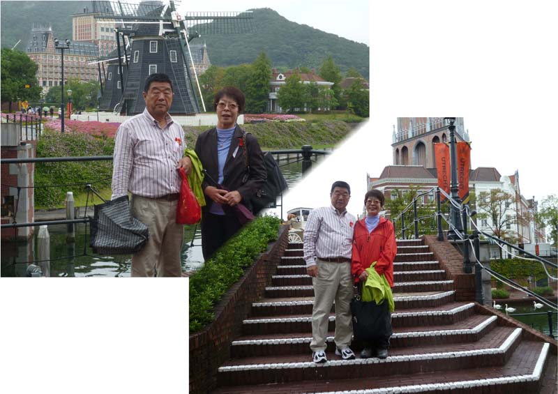 長崎 軍艦島とハウステンボスの旅(その6) 3日目はハウステンボスが目的地 8時出発で佐世保まで2時間 園内の自由時間は僅か3時間半だけ・・・出発時間が1時半と告げられて放し飼いにされる。皆それぞれ散らばるが遠くには行けないので、何処でも胸リボンを付けた爺婆を見かけ気持ちが落着く(^o^)/ 一番高い塔ででの展望・・・ヨット乗りの僕にはハーバーが一番気になる、後はオランダ風の人工美でさして感動は無し、園内では水路を引き込んだ別荘の前に桟橋を作ってヨットやパワーボートを係留したあるのがたくさん見かけた。羨ましい風景だが日本では不可能な光景だね・・・・出発時間が気になり30分前には殆ど出口に集合・・・ハウステンボスを後に一目散に新門司港のフェリーへ!!! |