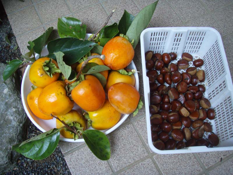 味覚の秋 昨日稲ワラを戴いた親戚の農家にお礼に行ったら大好物の渋抜き柿をお土産に貰っちゃった(^o^)/9月末から頂いてる近所の無人別荘の柿(No1)、最近判った我が家庭菜園にある甘柿("No2"大家のだけど採ってもOK)と今日の抜き柿(No3)と毎日々々"カキ"三昧だ、あけびはもう木の上で完熟し過ぎてるので採らない、乾燥させたギンナンは4.3kgもあり孫達に送った残りをオヤツに食べ始めてる、山っ栗は台風で大半が落ちてしまったが何回か栗ご飯にして食べた。九州旅行以降元に戻らない体重はキットこれら秋の味覚のせいかも知れない。Newsで熊や鹿が餌不足で人里まで出没してるとの事、杉やヒノキの植林だけでなく木の実が成る広葉樹をたくさん植えれば動物と人間の棲み分けが出来るのに・・・・ |