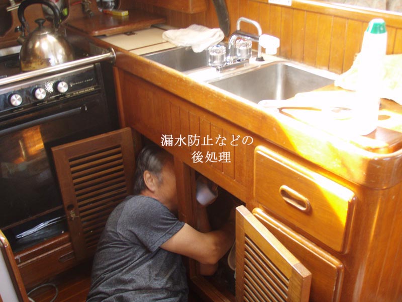 息切れ 2往復100m泳ぐのがやっと・・・・2週間ぶりのプール、身体が慣れていないのでワンピッチ100mでヒーヒーとプールサイドで息を継いでいる、普段は30分で800mは泳げるのに今日は700mを32分も・・・足が吊らないうちに切り上げ帰途は江之浦へ・・・陽射しが暑い快晴だけど東南東からの風が強く吹込み波立ってる、ライジャケを着込みテンダーを下して船へ・・・メインキャビンに雨漏りが発生しており台風21・22号絡みの大雨が予想されるので窓枠へコーキングを施した。クルーのTくんやSくんなら丁寧にやってくれるが僕のやり方は粗雑(ー_ー)!!でも一応これで雨漏りは止まる筈、両舷の窓全部を処理・・・ |