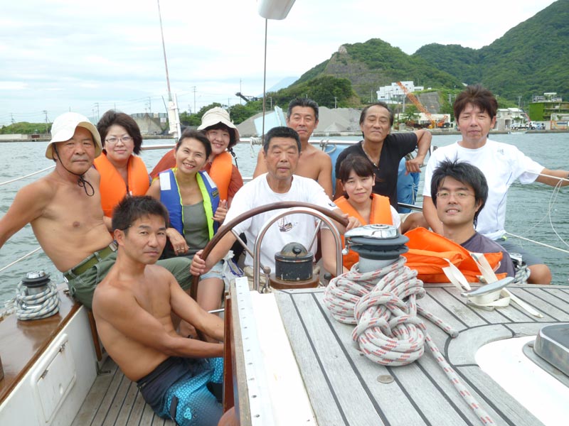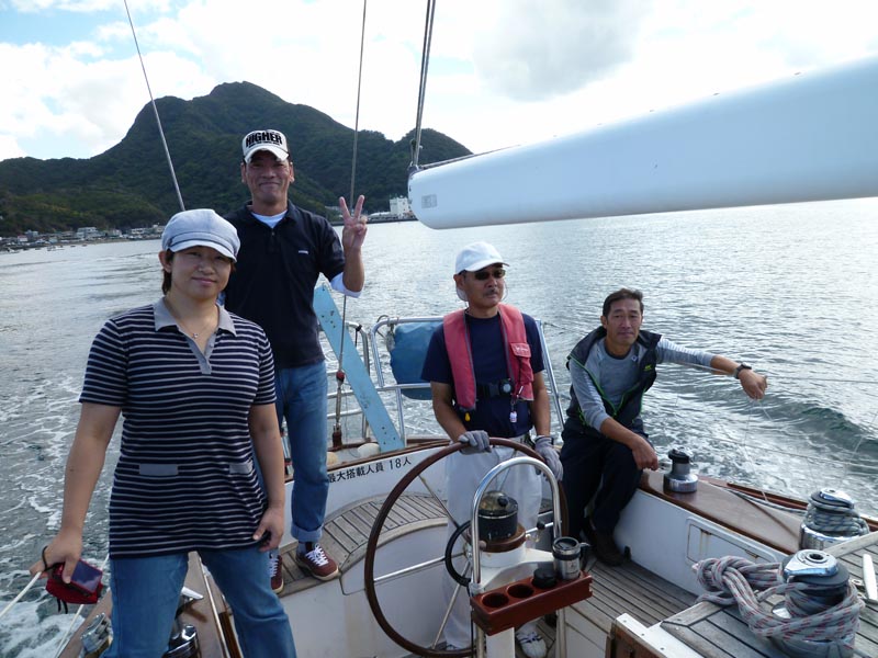 暑さも寒さも彼岸まで・・往く夏を惜しむかの様な素晴らしい好天に恵まれた、若手のゲストを乗せて総員15名と賑やかな船出、東南東からの追い風で大瀬沖に達するもまだ時間が早い、周辺での帆走を楽しみいつもの浮桟橋に係留、お昼を挟んで大瀬神社に参拝したり神池で鯉の大群に驚いたり、神社の木彫や神秘的ともいえるビャクシンの古木群に魅入ったり、浮桟橋から華麗なダイビングで日焼けの火照った身体を冷やしたり、若い方が多いと楽しみ方も多様で面白い(^o^)/、年寄の船長は昼寝の時間も取れない程・・・・帰途の帆走を期待してた南寄りの強い風は出港時には消えてなくなりエコクルーズは諦め機走にて母港江之浦に・・・ |