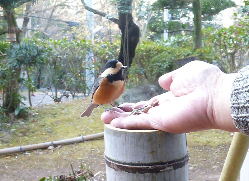 ヤマガラとの戯れ 家内曰くパッと来たとき凄く嬉しかった、ホンワリ軽く、爪は痛くもなく可愛いって感じで触られてるのが気持ちが良い、寒くなければいつまでも・・・竹皿にひまわりの種を入れると種が無くなるまで頻繁に訪れる、昨年も経験した手のひらに乗って貰おうと昨日やってみたら来る々々吾輩が姿を隠していると何度でも掌に・・・今朝は家内の番 高速連写で撮ったらホバリングまで撮れちゃった、連続写真でよく見ると可愛くて実に楽しい(^o^)/ |